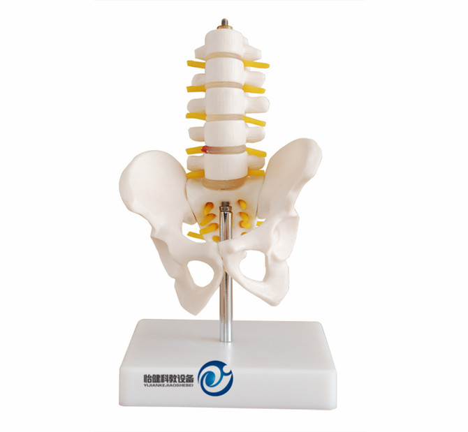 小型骨盆带五节腰椎模型由髋骨、骶骨、尾骨及5节腰椎组成,有底座。
